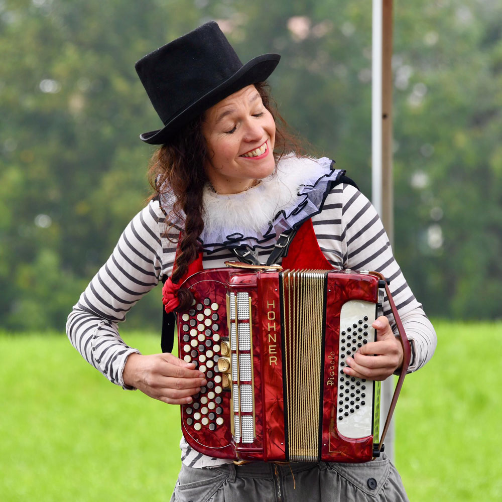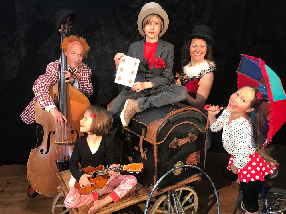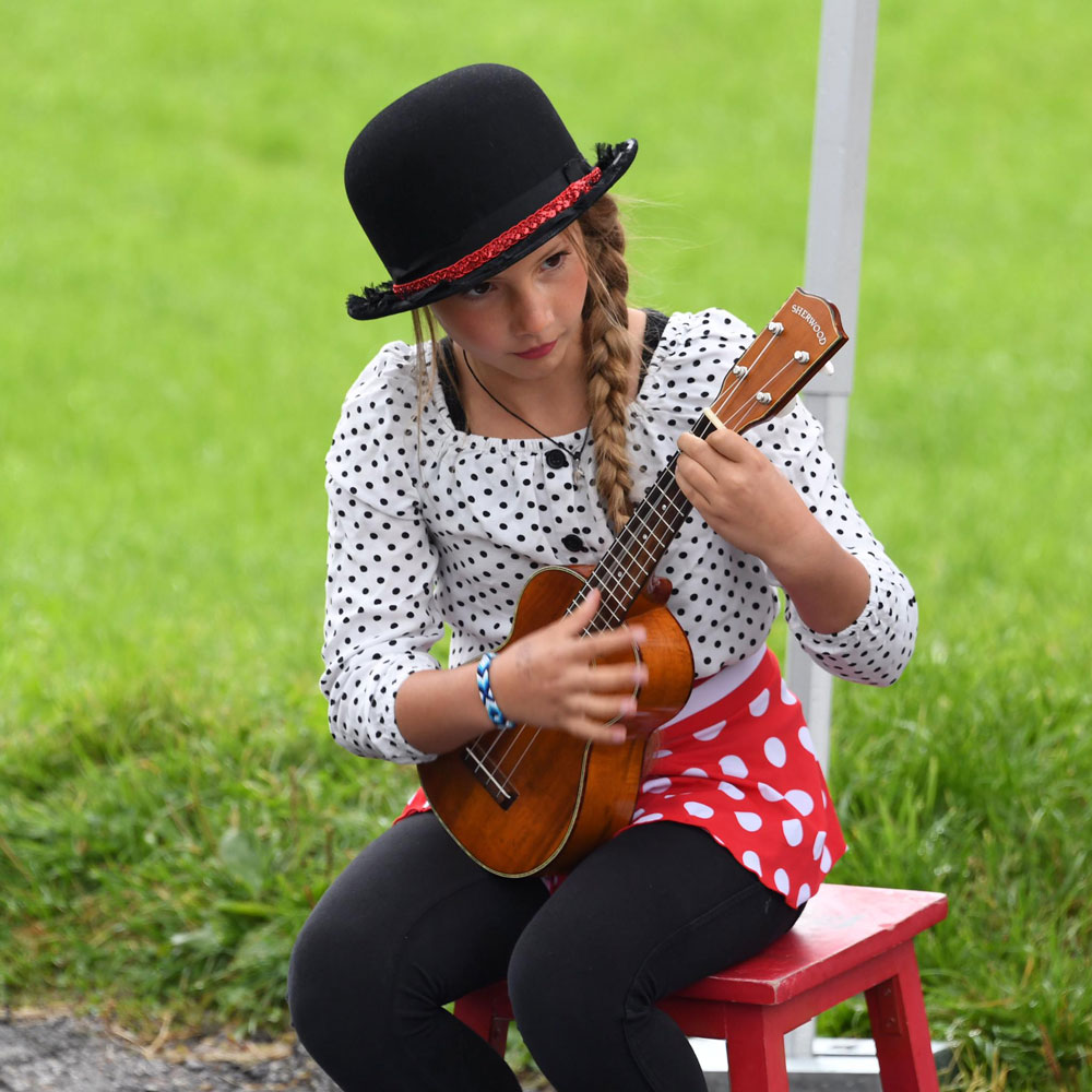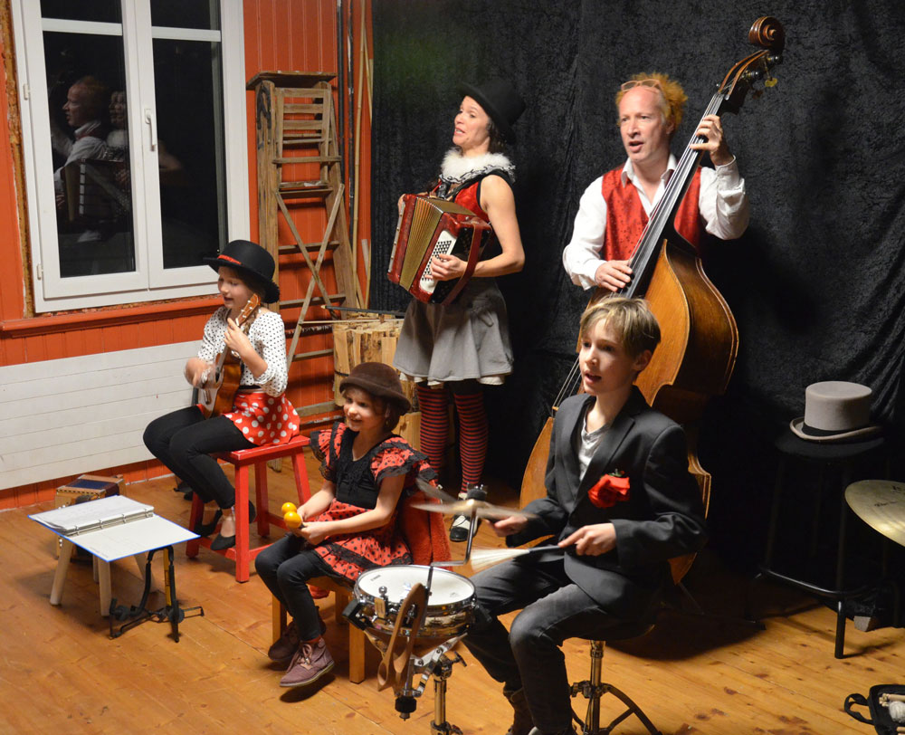 Yann l’ainé qui joue du piano, s’est approprié la batterie pour cette formation. Sophia présente avec le chant et le jodel, le Schwyzer örgeli et l’ukulele. Tous accompagnés avec joie par Juliette, la plus jeune, avec des maracas.