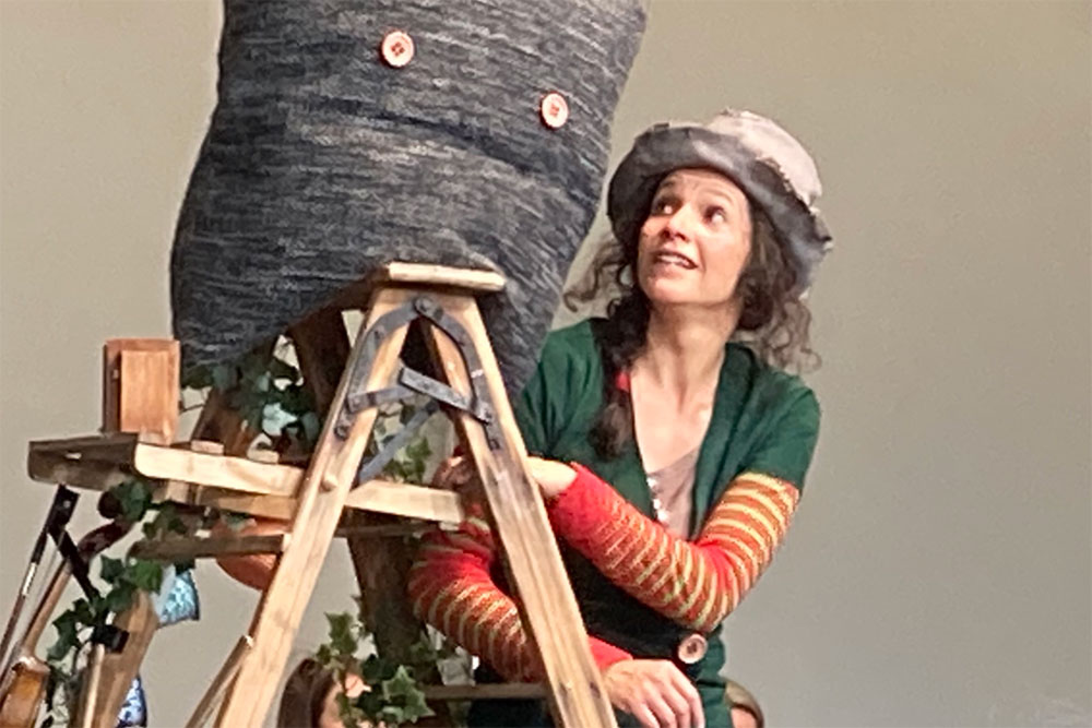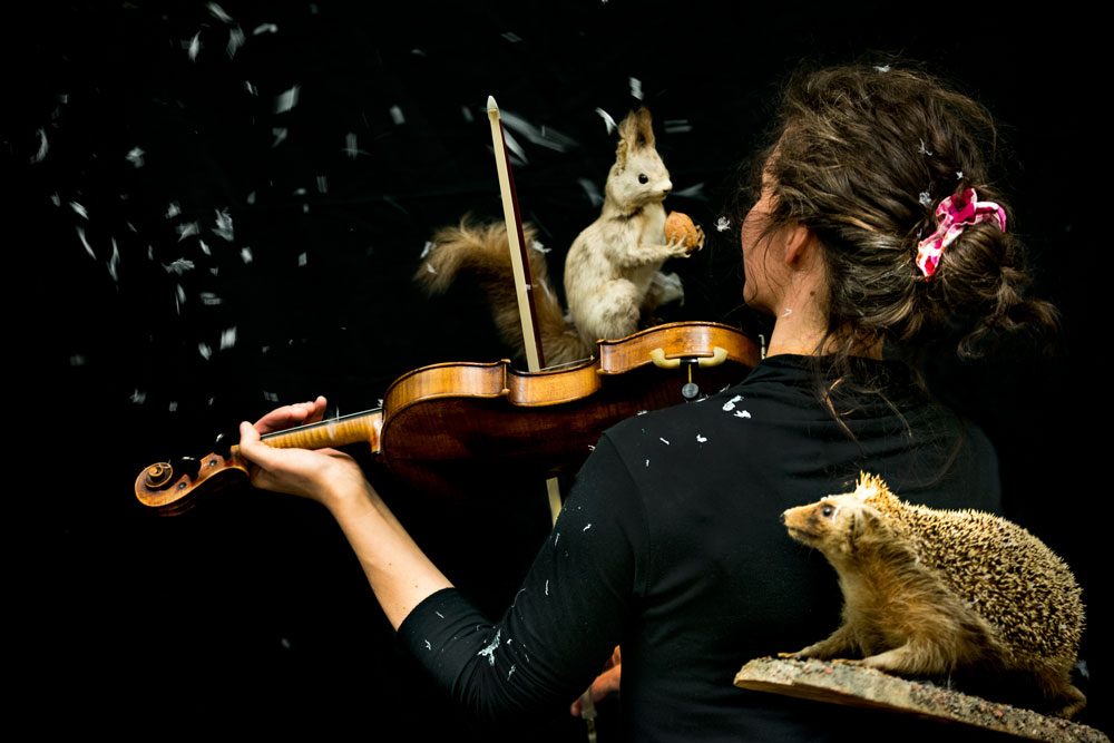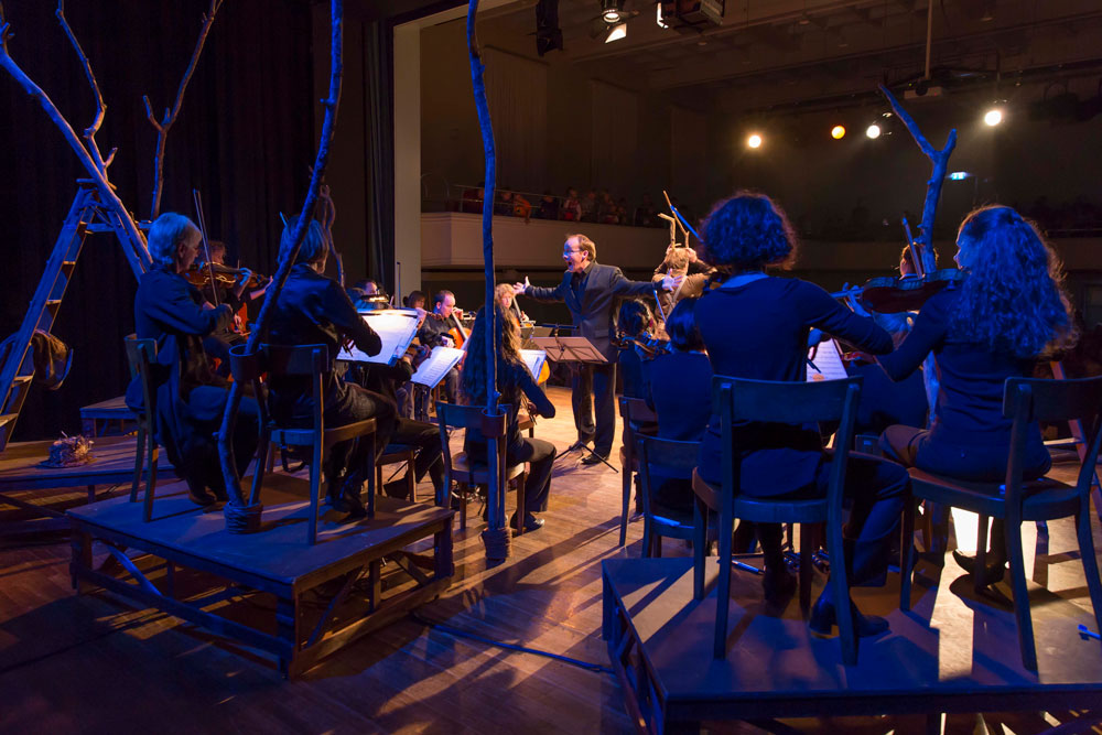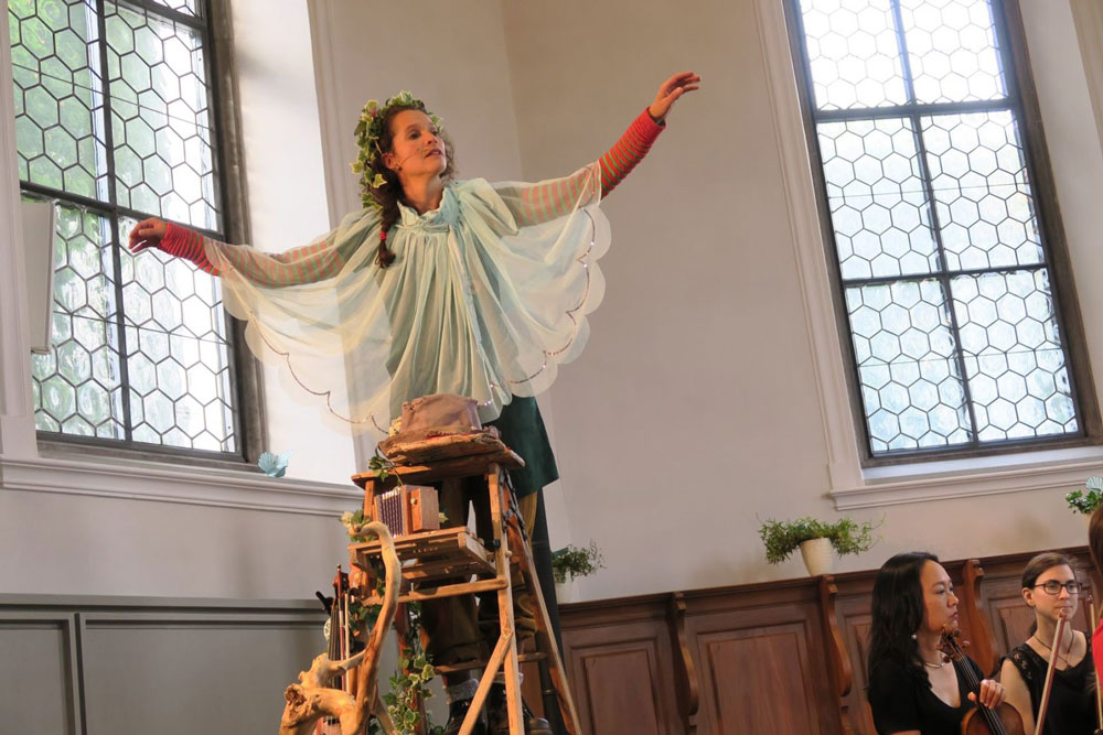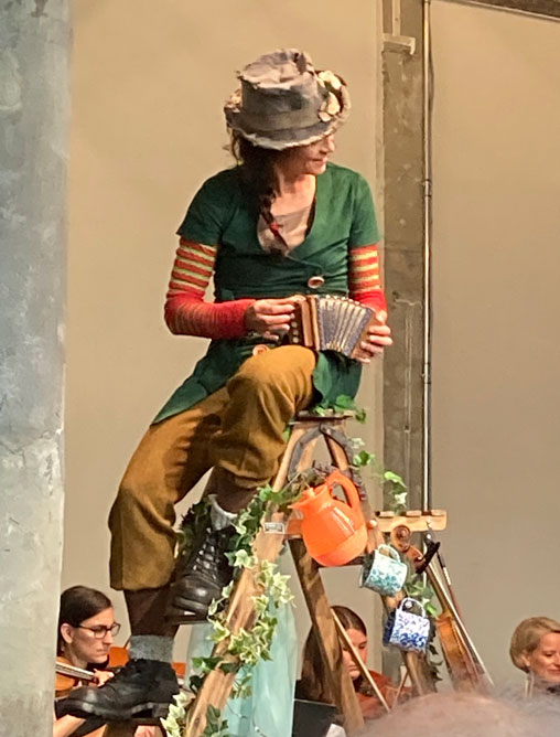 Annette Démarais- Stickel erzählt die Geschichte von Smilla Waldtroll mit Unterstützung des kammerorchesters sankt gallen, welches die Waldmusik (Max Bruchs Streicherserenade nach Schwedischen Volksliedern u.a.) dazu spielt.